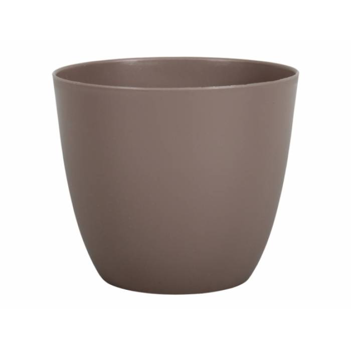 Plastový matný obal na květník standardního tvaru. Barva: hnědo šedá. Rozměry: d 18 x 16 cm.