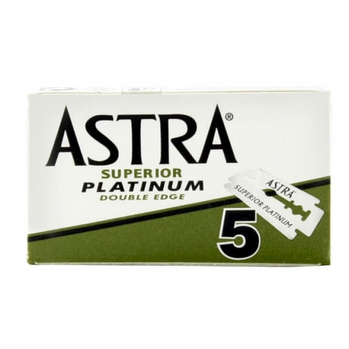 Legendární žiletky Astra Platinum pro klasické holicí strojky. Každá žiletka je balena zvlášť ve voskovaném papíře.Žiletky mají ostré ostří chráněné platinovým povlakem pro to nejhladší oholení bez zbytečného podráždění pokožky. Dodáváno v papírové krabičce, která obsahuje 5 žiletek. Vyrobeno v Rusku.