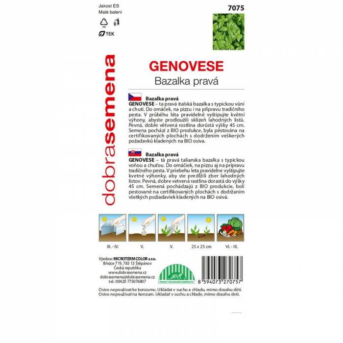Ta pravá italská bazalka s typickou vůní a chutí. Do omáček, na pizzu i na přípravu tradičního pesta. V průběhu léta pravidelně vyštipujte květní výhony, abyste prodloužili sklizeň lahodných listů. Pevná, dobře větvená rostlina dorůstá výšky 45 cm. Semena pochází z BIO produkce, byla pěstována na certifikovaných plochách s dodržením veškerých požadavků kladených na BIO osiva.
