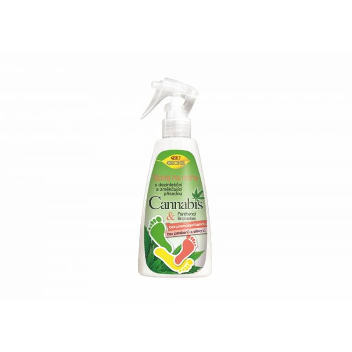 Sprej deodorační, adstringentní, chladivý, změkčující a relaxační bylinkový na Vaše nohy. Komplexní účinek, okamžitý efekt, zaručuje spolehlivé potlačení mikroorganismů a plísní na chodidlech, mentol příjemně ochladí a prokrví pokožku, glycerin zvlhčí a zvláční. Omezením množství mikrobů dochází k výraznému poklesu pachu nohou, zmírňuje se i jejich pocení, výrazně se snižuje riziko rozvoje různých plísňových onemocnění. Přípravek obsahuje unikátní rostlinný proteolytický enzym z ananasu, který jemně a šetrně zvolna rozpouští ztvrdlou pokožku a tím ji z nohou odstraňuje! Dále obsahuje oblíbený extrakt Cannabis pro regeneraci a celkové osvěžení. Zamezuje pachu nohou a obuvi s účinkem až 24 hodin. Použití: Řádně umytá a osušená chodidla stejnoměrně postříkejte sprejem a rukama promasírujte. Nasaďte bavlněné ponožky. Opakujte dle potřeby, nejméně jednou denně. Dobré rady: Pro maximální komfort Vašich nohou používejte prstové ponožky. Účinně odsávají pot z prostorů mezi prsty. Používejte vždy a výhradně pouze 100% bavlněné ponožky! Nenechejte se ošidit! · Ponožky měňte aspoň 1× denně. Staré a páchnoucí boty vyhoďte. Novější boty, pokud to charakter umožní – vyperte v automatické pračce. Vnitřek bot řádně vystříkejte sprejem na nohy Cannabis a vysušte na topení. Pravidelně provádějte pedikúru a odstraňování staré odumřelé kůže.