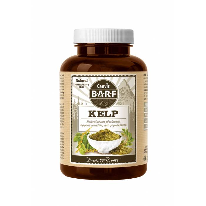 Canvit BARF Kelp obsahuje 100% mořské řasy Ascidophylum nodosum (u nás známé pod názvem kelpa). Organická kelpa prokazatelně působí proti tvorbě zubního plaku a formování zubního kamene tím, že omezuje schopnost nepřátelských bakterií se zachytit na zubech a dásních. Díky tomu omezuje vznik zubního plaku a napomáhá k narušení struktury již vzniklého zubního povlaku a kamene. Zubní povlak a kámen se tak stává měkčí a poréznější. Díky tomu povlak mizí a také je snadno mechanicky odstranitelný. Pravidelné podávání kelpy dále velmi efektivně potlačuje nepříjemný zápach z tlamy, působí proti zánětům i krvácení dásní a předčasnému vypadávání zubů způsobeným nesprávnou hygienou zubů a dásní. Podávání kelpy je nezbytné u psů a koček, kterým jejich páníčci nečistí zuby mechanicky. Kelpa má také pozitivní účinky na zdraví kůže a srsti díky vysokému obsahu vitamínů, mikroprvků, aminokyselin a omega 3 a 6 nenasycených mastných kyselin. Mořská řasa napomáhá také při dosycený přirozené pigmentace nosní houby, víček a očního okolí a zvýraznění barevné srsti - je tedy idálním doplňkem pro výstavní psy v barvách tricolor, s pálením a také pro bílé a světlé psy pro dosycení černé nosní houby. Kelpa nezpůsobuje reznutí srsti a tak je vhodná jak pro psy černé, tak bílé i barevné. Kelpa společně s pivovarskými kvasnicemi poskytuje kompletní zdroj mikroprvků a vitamínů pro pokrytí denní potřeby psa krmeného BARF dietou.
