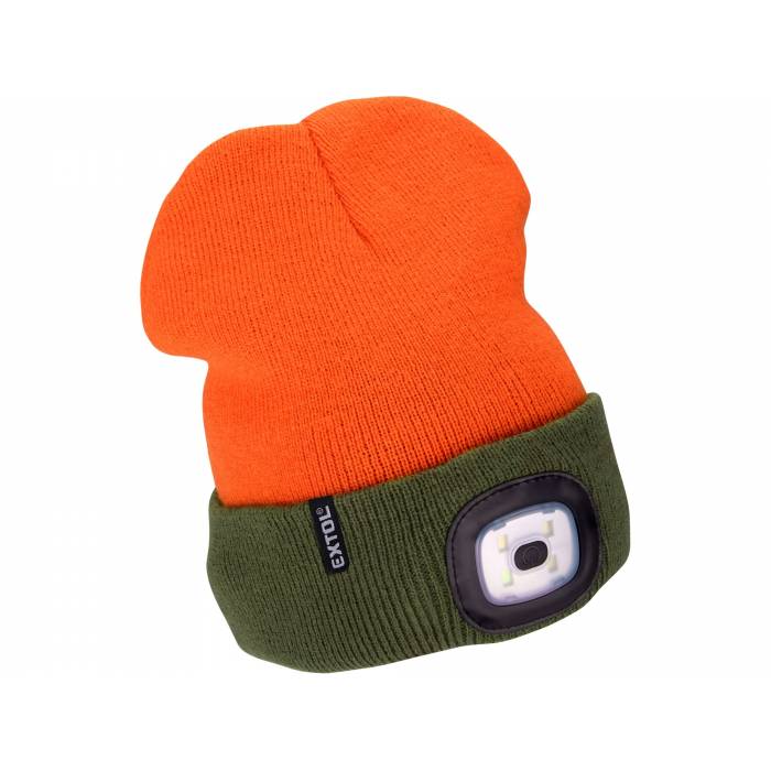 Čepice s čelovkou 4x45lm, USB nabíjení, fluorescentní oranžová/khaki zelená, uviverzální velikost