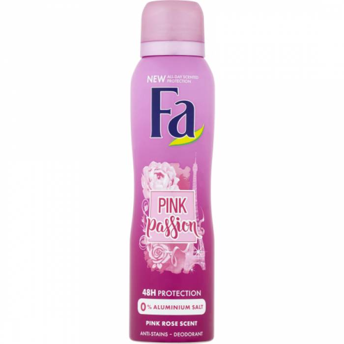 Fa Pink Passion deodorant má jemnou a ženskou vůní. Receptura Double-active s protectivy nabízí až 48 hodinovou spolehlivou ochranu před tělesným pachem a dlouhotrvající svěžest. Vlastnosti deodorantu: Chrání před potem až 48 hodin. Citlivý k pokožce s vůní růžových růží. Neobsahuje hliníkové soli. Použití: Nepoužívejte na podrážděnou pokožku. Před použitím dobře protřepejte. Sprej držte kolmo a aplikujte 15 cm od podpaží krátkými střiky. Složení: Butane, Alcohol denat., Propane, Isobutane, Triethyl Citrate, Parfum, Linalool, Hexyl Cinnamal, Limonene, 1,2-Hexanediol, Caprylyl Glycol, Aqua, 2-Benzylheptanol, Cocamidopropyl PG-Dimonium Chloride Phosphate, Menthyl Acetate, Phenoxyethanol, Citronellol, Coumarin.