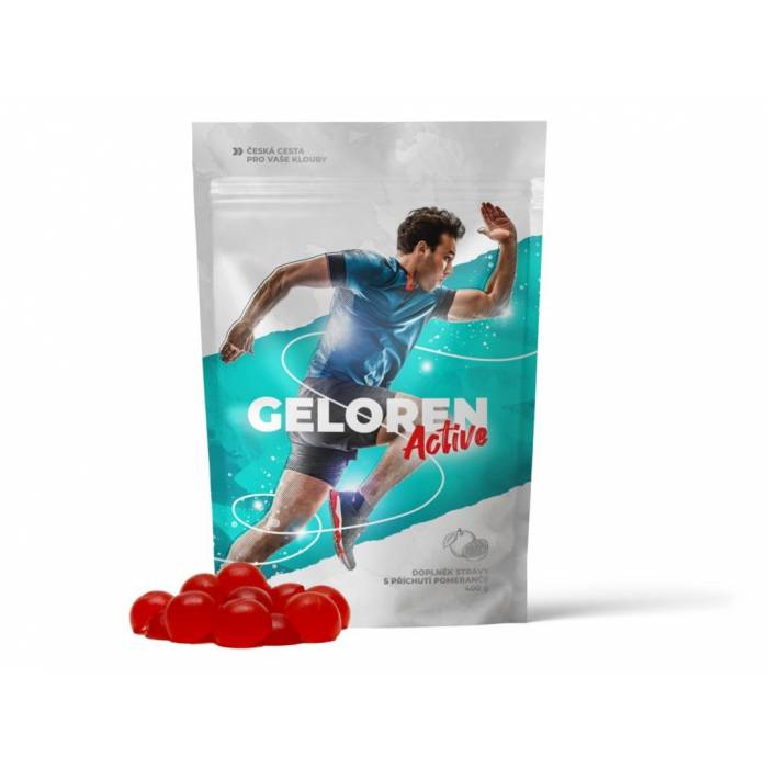 Geloren Active je doplněk stravy, který pečuje o pohybový aparát, tento přípravek je vhodný především pro lidi, kteří mají silně namáhané klouby. Obsahuje kyselinu hyaluronovou, chondroitin sulfát, hydrolyzovaný kolagen, želatinu a vitamin C. Kyselina hyaluronová je látka přirozeně se nacházející v lidském těle a je součástí mezibuněčné hmoty a ve zvýšené míře ji najdeme právě v kloubech. V podobě kloubní tekutiny zajišťuje lubrikaci kloubních ploch a snižuje nepříjemné tření. Dále je produkt obohacený o vitamin C, který přispívá k normální tvorbě kolagenu pro normální funkci kostí a chrupavek. Geloren Active je ve formě želé tablet s příchutí pomeranče, které se snadno konzumují. Geloren Active - ochraň své klouby, vazy a šlachy Geloren Active v bodech: želé tablety na ochranu kloubů, vazů a šlach vhodné pro fyzicky aktivní osoby a seniory obohacený o vitamin C s pomerančovou příchutí