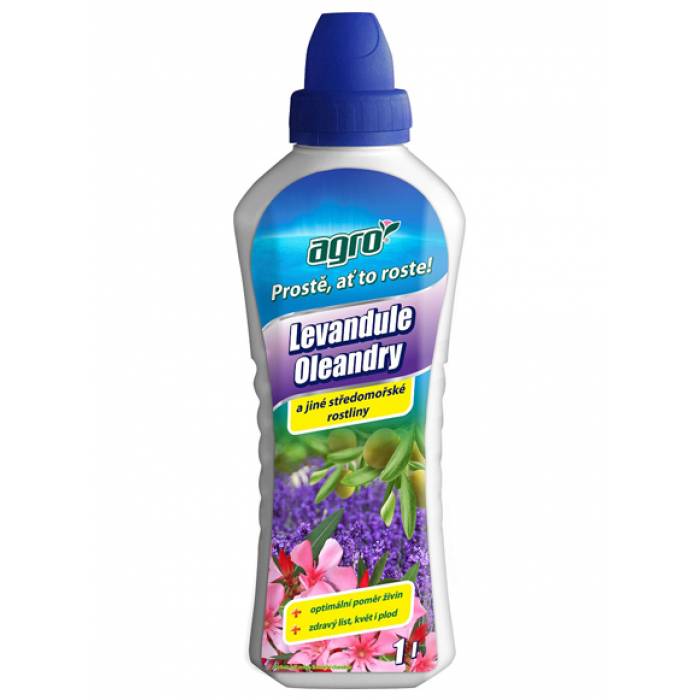 Kapalné hnojivo pro levandule a oleandry Agro je minerální hnojivo určené pro všechny středomořské rostliny pěstované na zahradě ve volné půdě i v pěstebních nádobách ( levandule, oleandry, olivovníky, palmy, citrusy apod.) Hnojivo se používá ve formě zálivky. Před použitím obsah důkladně protřepejte. Vždy přihnojujte na vlhkou zeminu.