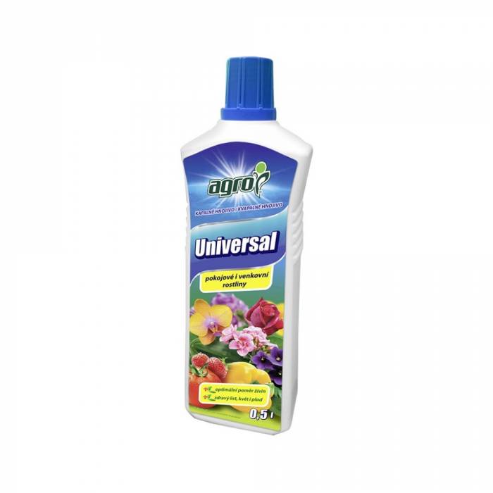 Univerzální kapalné hnojivo Agro pro pokojové i venkovní rostliny je kvalitní univerzální kapalné hnojivo vhodné pro veškeré pokojové, balkónové, terasové květiny i ostatní zahradní rostliny. Toto minerální hnojivo je bohaté na organické a minerální látky a stopové prvky. Díky svému složení dodáva rostlinám kvalitní výživu pro správný zdravý růst, bohaté kvetení rostlin a tvorbu listů.