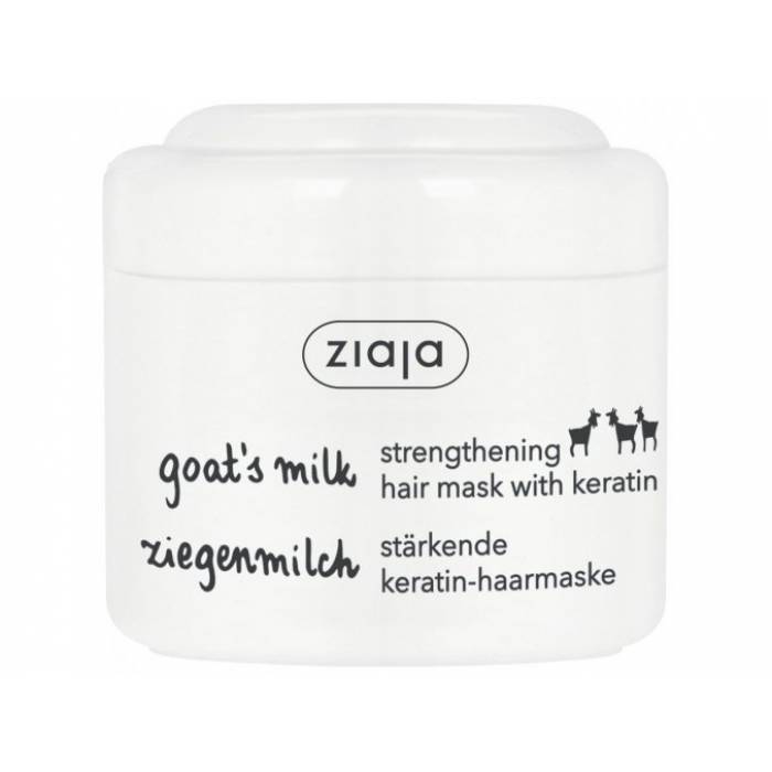 Vyživující krémová maska na vlasy s komplexem složek kozího mléka pro intenzivní regeneraci suchých, poškozených vlasů. Komplex složek kozího mléka obsahuje proteiny, lipidy, uhlovodany a vitamíny A a D. Stimuluje tvorbu kolagenu a elastinu. Zvyšuje pružnost a oddaluje proces stárnutí. Chrání pleť před působením volných radikálů. Vyživuje a dokonale hydratuje. Maska na vlasy účinně regeneruje narušenou strukturu vlasů, navrací vlasům jemnost a hebkost. Obsahuje keratin a proteiny kozího mléka, které obnovují vlasy v místech, kde jsou poškozeny, a navíc nový vysoce efektivní kondicionér - Polyquaternium-70. Ani s vysokou koncentrací účinných látek nezatěžuje vlasy, díky účinkům je doporučená na vlasy, které jsou často vystavené kadeřnickým procedurám.