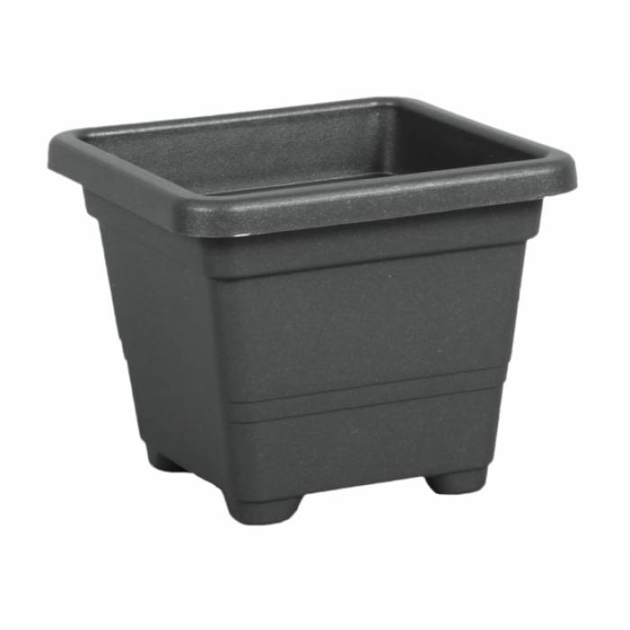 Hranatý květník je vyroben z odolného plastu. Barva: antracitová. Rozměry: 22 x 22 x 18 cm