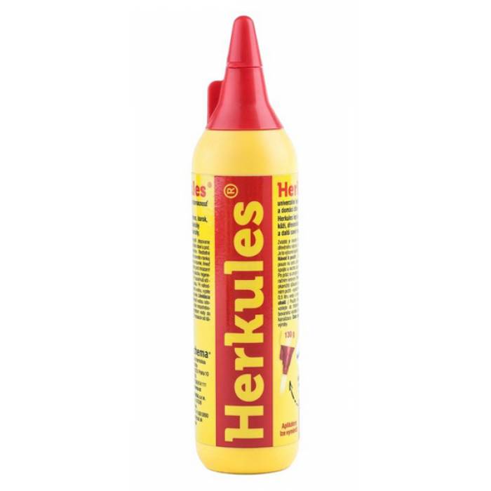 Univerzální disperzní lepidlo. Herkules lepí papír, dřevo, korek, kůži, dřevovláknité materiály a další savé materiály. Zvláště je vhodný na lepení fotografií, slepování dřevěného nábytku, kožených výstelek obuvi apod. Objem 130 g. Lepidlo naneste v tenké vrstvě pouze na jednu plochu určenou ke slepení, ihned spojte a nechte zaschnout. Chraňte před mrazem! Neobsahuje rozpouštědla.