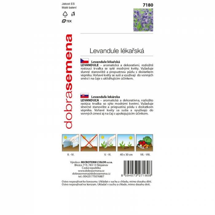Levandule lérakřská aromatická a dekorativní, rozložitě rostoucí trvalka se sytě modrými květy. Vyžaduje slunné stanoviště a propustnou půdu s dostatkem vápníku. Voňavé květy se suší a využívají do vonných směsí i na čaje s uklidňujícím účinkem.