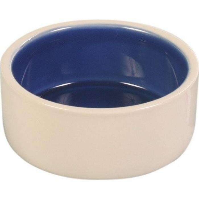 Keramická miska s glazurou 100ml/7cm - béžovo/modrá TRIXIE Keramická miska pro křečky, myšky a jiná malá zvířata. Béžová s modrou glazurou uvnitř. Rozměry 100mlx7cm?