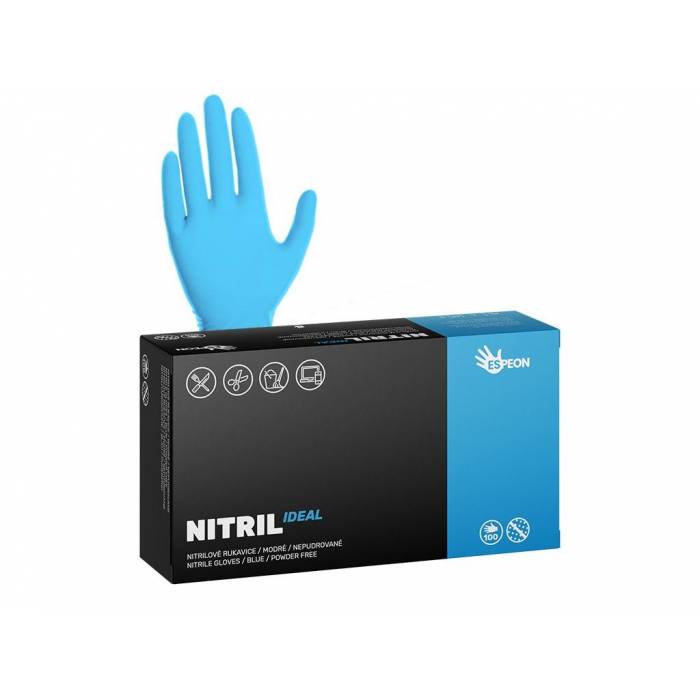 Jednorázové nitrilové nepudrované rukavice Espeon nepudrované, nesterilní, atest pro potravinářství. Přizpůsobí se tvarově ruce v krátké době. Jsou nesterilní s atestem pro potravinářství,mají modrou barvu, neobsahují přírodní latex. Rukavice jsou vhodné pro manipulaci s potravinami, s výjimkou kyseliny octové po dobu 2 hodin při teplotě 40 °C (pH < 4,5) si zachovávají své vlastnosti při skladování v suchém stavu při teplotě mezi 10 až 30 °C. Chraňte rukavice před UV fialovým světlem ze slunce a mají obsah vlhkosti pod 0,8 %. Doba použití nitrilových rukavic jednorázových je 5 let od data výroby vyznačené na obalu.Rukavice nejsou vhodné pro kontakt s velmi horkými předměty, rukavice nezajišťují ochranu proti chemickým rizikům. Vhodné pro uživatele, kteří hledají nízkou cenu, rukavice používají krátkou dobu a na méně náročné činnosti.