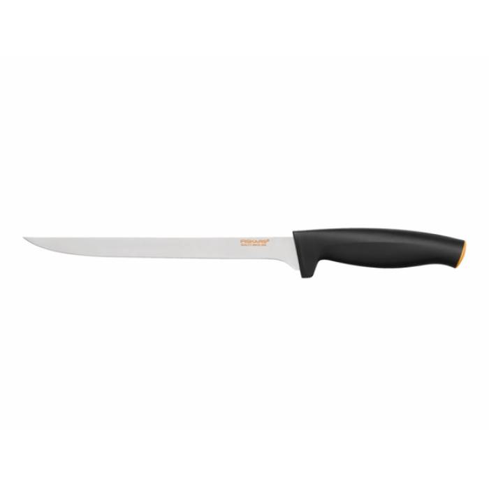Tenký nůž s pružnou čepelí je vhodný pro přípravu masa a ryb. Hmotnost: 70 g. Délka: 21 cm.