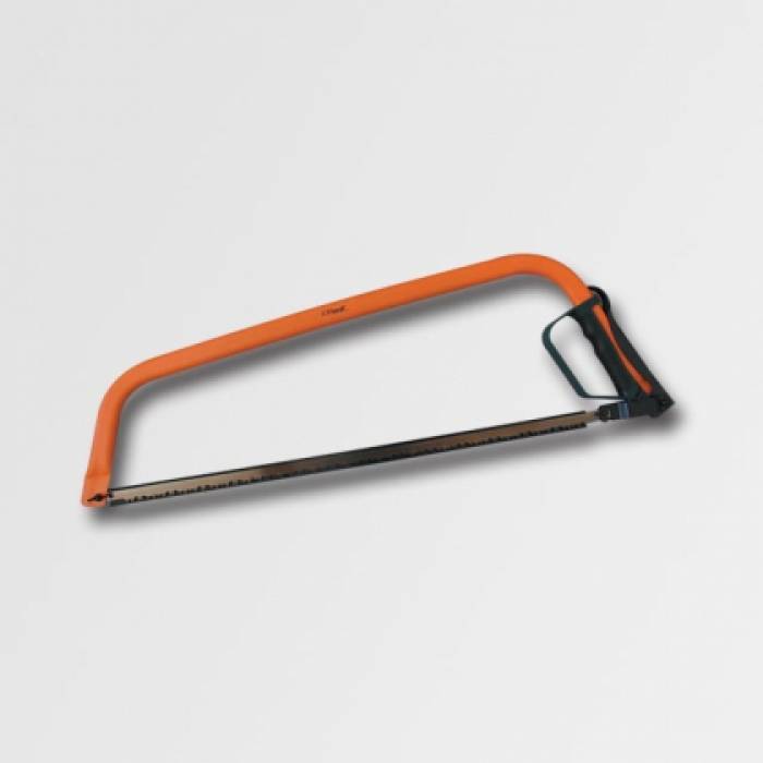 Oblouková pila na dřevo s oválným rámem odolným proti kroucení. Pilový plátek lze rychle vyměnit pomocí křídlových matic a napínací páky. Oboustranně broušené zuby umožňují rychlejší řezání v obou směrech. Měkká gumová rukojeť proti proklouznutí, pilový plátek pro řezání mokrého dřeva. Rychlá výměna a napnutí plátku. Ochrana ruky proti poranění.