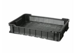 Manipulační přepravka je vyrobena z recyklovaných plastů na bázi polyethylenu a polypropylenu. Maximální hmotnost obsahu přepravovaného zboží: 10 kg, maximální hmotnost plných přepravek naskládaných ve stohu: 320 kg. Rozměry: 600 x 400 x 130 mm.