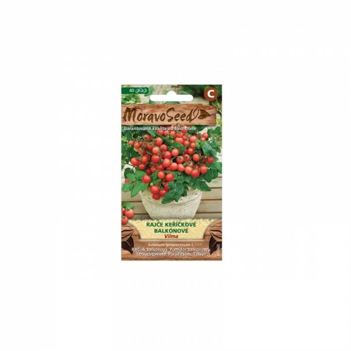 Patří mezi nejpopulárnější odrůdu, která Vám bude skvěle plodit na každém balkonu! Jedná se o speciální zakrslou odrůdu, která dosahuje výšky 30-35 cm. Plody se svou velikostí řadí mezi „cherry“ odrůdy a váží 15 -20 g, velikost kolem 2 cm jsou velmi chutné. Balení obsahuje 40 semen. Lycopersicon esculentum - Vilma Patří do čeledi lilkovitých. Pochází ze Střední a Jižní Ameriky. Rostliny jsou až 2m vysoké, pokryté jemnými chloupky. Listy jsou hluboce vykrajované, lichozpeřené. Květenstvím je vijan se třemi až dvaceti oboupohlavními květy, které mají žlutou barvu. Plodem je bobule, neboli rajče. Pěstují se tyčkové nebo keříčkové odrůdy rajčat, na nichž rostou plody červené, žluté, oranžové, růžové i bílé.