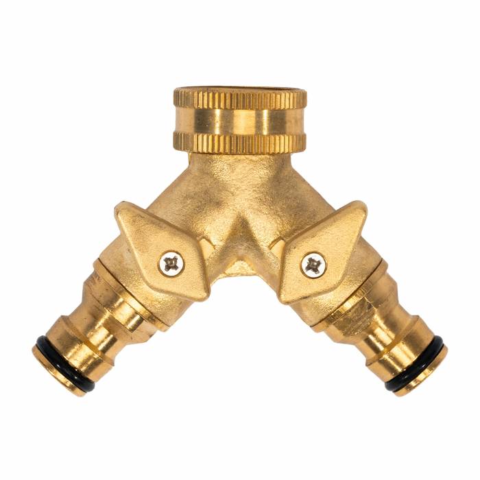 Rozdvojka při připojení 2 ks příslušenství na jeden přívod vody. Zavírací ventily pro regulaci vody. 3/4"