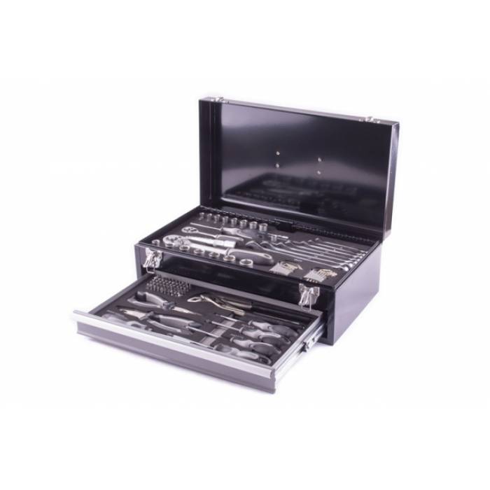 - dílenský kovový kufr o rozměru 44 x 24 x 16,5cm - 2 vrstvy nářadí, materiál: karbonová ocel, CrV - 1/2 hlavice 7ks: 10, 13, 14, 15, 16, 17, 19mm - 1/2 prodlužovací nástavec 125mm - 1/2 ráčna - 1/4 hlavice 8ks: 6, 7, 8, 9, 10, 11, 12, 13mm - 1/4 prodlužovací nástavec 50mm - 1/4 ráčna - adaptér ráčna 1/4 na bit - 50ks bitů 25mm + nástavec - klíč očkoplochý 7ks: 8, 9, 10, 13, 14, 17, 19mm - imbus 11ks: 1,27-1,5-2-2,5-3-3,5-4-4,5-5-5,5-6mm - torx 8ks: T9, T10, T15, T20, T25, T27, T30,