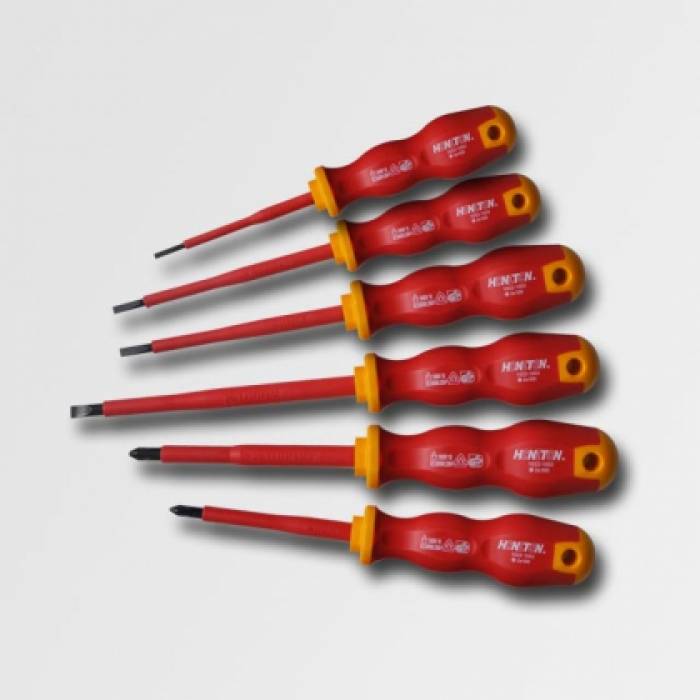 Elektrikářské šroubováky jsou individuálně testovány ve vodě při 10.000V a podrobeny následujícím 5 fázím testu šarže: - navrženy a testovány podle mezinárodních standartů - bi-metalová rukojeť umožňuje pohodlné použití - lisované kotouče izolace - dřík z vysoce kvalitní legované oceli - izolace až do výše 10.000 V AC VYSOKÁ BEZPEČNOST A KOMFORT: Při práci na elektrických zařízeních pod proudem je třeba mít správně izolované nástroje, na které se můžeme opravdu spolehnout. Náš nový VDE 1000 izolovaný šroubovák je odpovědí na přísné požadavky ; trhu. Komfort je zásadní. Šroubovák tvoří dvousložková, ergonomicky tvarovaná rukojeť charakteristická svým červeno-žlutým zabarvením. Nástroje jsou jednotlivě testovány pro splnění norem IEC 900, ČSN EN 60900 a VDE 0680/02. TEST HOŘLAVOSTI: Nástroje jsou testovány na nehořlavost a tím eliminují rizika požáru. SILOVÝ TEST: Nástroje jsou testovány, aby vydržely zatížení silou 20 N a teplotu až do + 70°C při 5000 V AC napěťového testu. ELEKTRICKÝ TEST: Nástroje jsou ponořeny do vody po dobu 24 hodin a poté připojeny k 10.000 V po 3 minuty pro vyloučení přerušení izolace nebo defektu. TEST ODOLNOSTI VŮČI MRAZU: Nástroje jsou testovány na teploty -40°C odolnosti proti nárazu. Izolační materiál chrání nástroj proti nárazům i při extrémních teplotách. TEST PŘILNAVOSTI IZOLACE: Přilnavost izolace na nástroj sama o sobě je testovány tak, aby vydržela i velké zatížení.