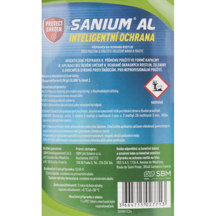 Insekticidní sprej ve formě rozprašovače je vhodný k přímému použití proti mšicím, molicím, třásněnkám. Sanium je určen na okrasné rostliny a ovoce a zeleninu. Chrání až 8 týdnů, působí již 1 hodinu po aplikaci. Balení: 1 l. Používejte přípravky na ochranu rostlin bezpečně. Před použitím si vždy přečtěte označení a informace o přípravku. Respektujte varovné věty a symboly.