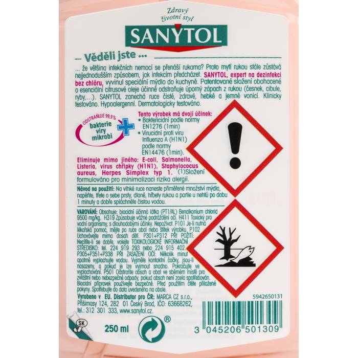 Sanytol tekuté mýdlo dezinfekční kuchyně 250 ml