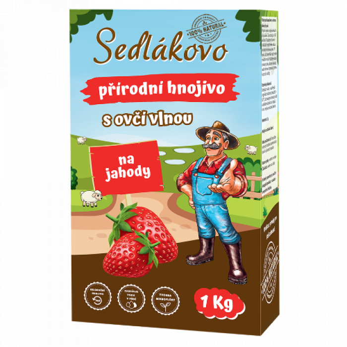 Sedlákovo ekologické přírodní hnojivo na jahody s ovčí vlnou je vysoce kvalitní organické hnojivo, které zlepšuje vlastnosti půdy a obohacuje ji o důležité živiny. Složení zahrnuje pelty ovčí vlny, rohovinu, fermentovaný kravský a slepičí hnůj, kostní moučku a další prvky, které podporují růst a zdraví jahod. Hnojivo aktivně stimuluje mikroflóru v půdě, zvyšuje schopnost půdy zadržovat vodu a pomáhá rostlinám vyrovnat se s abiotickými stresy. Díky dlouhodobému účinku a ekologickým vlastnostem je ideální pro venkovní pěstování jahod a příznivé pro životní prostředí, včetně hmyzu.