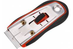 Hlavní technické parametry: Informační text: kovové tělo z nerezové oceli, rukojeť z ABS plastu měkčená protiskluzovou TPR gumou popis: vyměnitelný břit 38x19mm (Extol břity 9141), rukojeť z ABS plastu měkčená protiskluzovou TPR gumou materiál: NEREZ