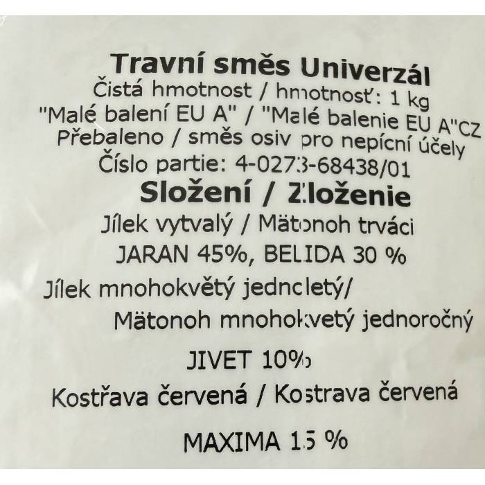 Travní směs univerzální je složena z tuzemských odrůd trav přizpůsobených našim klimatickým