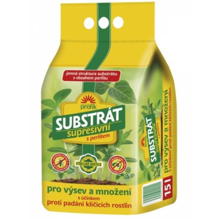 Supresivní výsevní substrát je určen speciálně pro výsevy a množení rostlin. Je připraven ze směsi vytříděné světlé a tmavé rašeliny s upravenou pH reakcí a perlitem. Je vhodný jak k setí semen, tak i k přepichování řízků rostlin. Substrát je obohacen hnojivem se základními i stopovými živinami v nezbytném rozsahu, což má příznivý vliv na bezproblémové zakořeňováni řízků a klíčení výsevů, dále je obohacen o houbu Trichoderma virens, která aktivně potlačuje původce významných houbových onemocnění, včetně fytopatogenních hub rodů Fusarium, Pythium, Sclerotinia a Rhizoctonia.