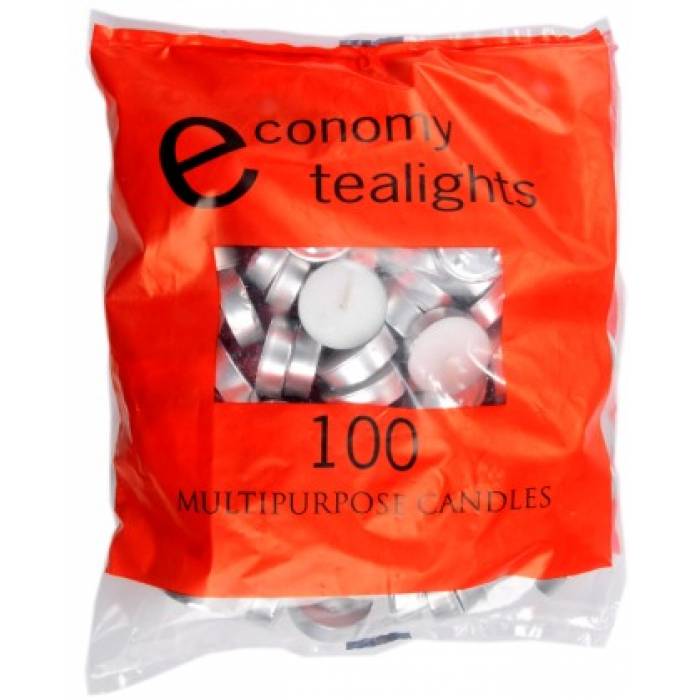 Čajové svíčky bílé 100 ks. Parafínové. Doba hoření: 3 - 4hod.