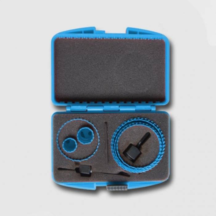 Sada 7 vykružovacích korunek a vodícího vrtáku se dvěma upínacími stopkami je kompletně vyrobena z HSS oceli. Rychlá výměna stopky pro menší nebo větší korunku pomocí přiloženého imbusového klíče. Určeno pro vrtání otvorů do dřeva, překližky, laminátu, sárokartonu, plastu a gumy. - vodící vrták a 2 stopky pro všechny korunky, hloubka prořezu 25mm 19,22,35,51,60,68,73mm, držák korunek s vodícím vrtákem, imbus klíč